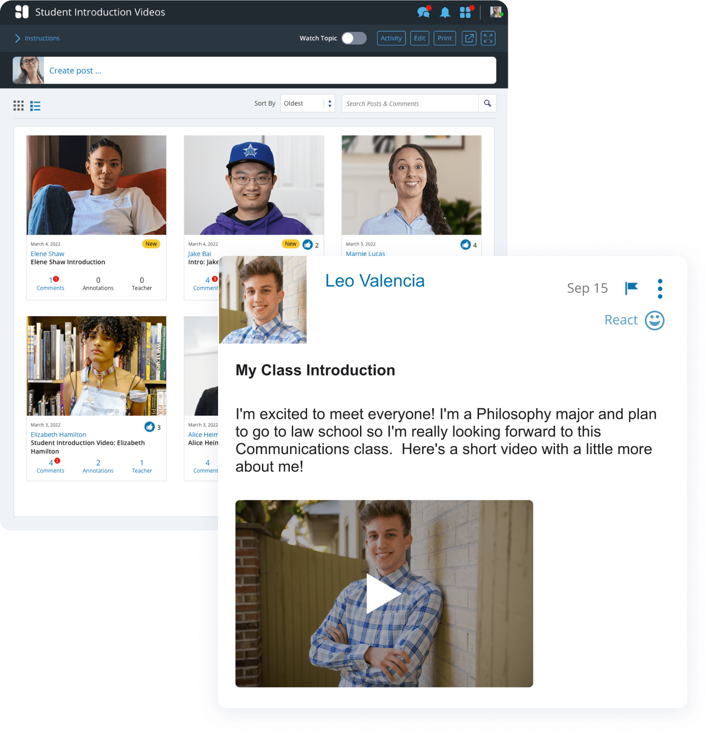 With Milestones, students thoughtfully engage with one another throughout the length of the course — not minutes before each deadline — improving their understanding of course material and peer relationships. With the ability to post text, video, or audio responses, students feel empowered to participate in a way they feel most comfortable.